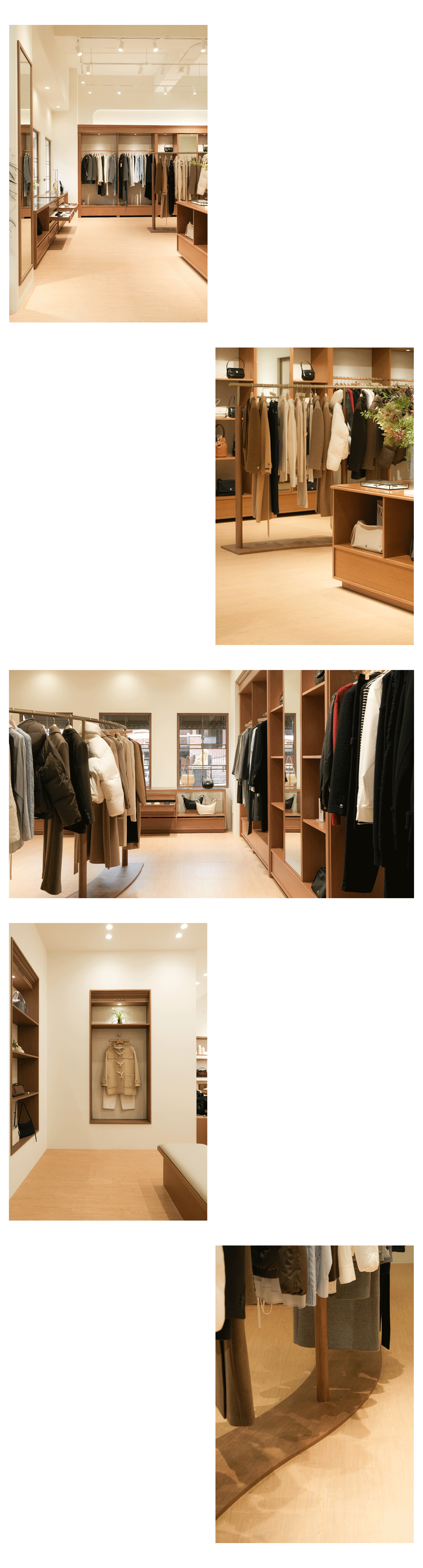 내부는 톤온톤 우드와 부드러운 조명, 곡선형 집기를 활용해 브랜드의 절제된 고급스러움을 표현했습니다.